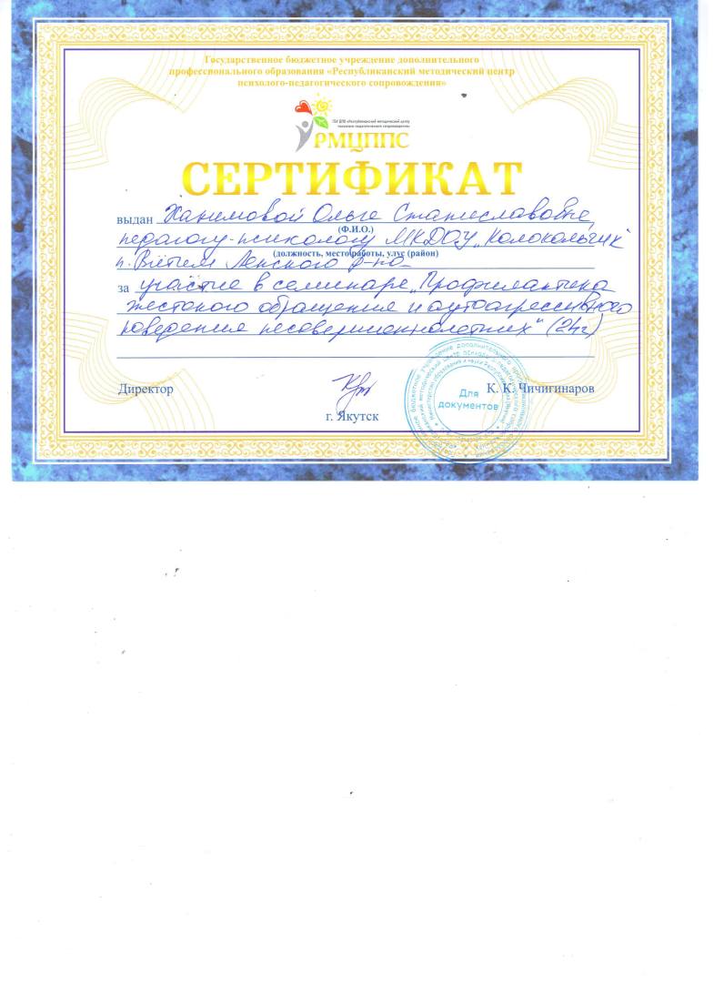 Участие в семинаре на тему: «Профилактика жестокого обращения и аутоагрессивного поведения несовершеннолетних»