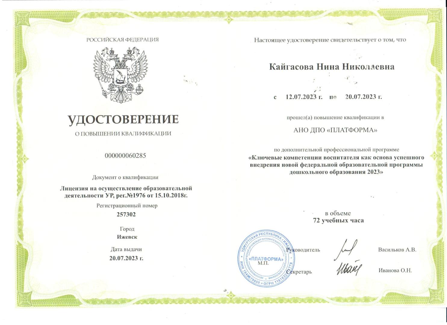 Курсы повышения квалификации АНО ДПО «ПЛАТФОРМА», г. Ижевск