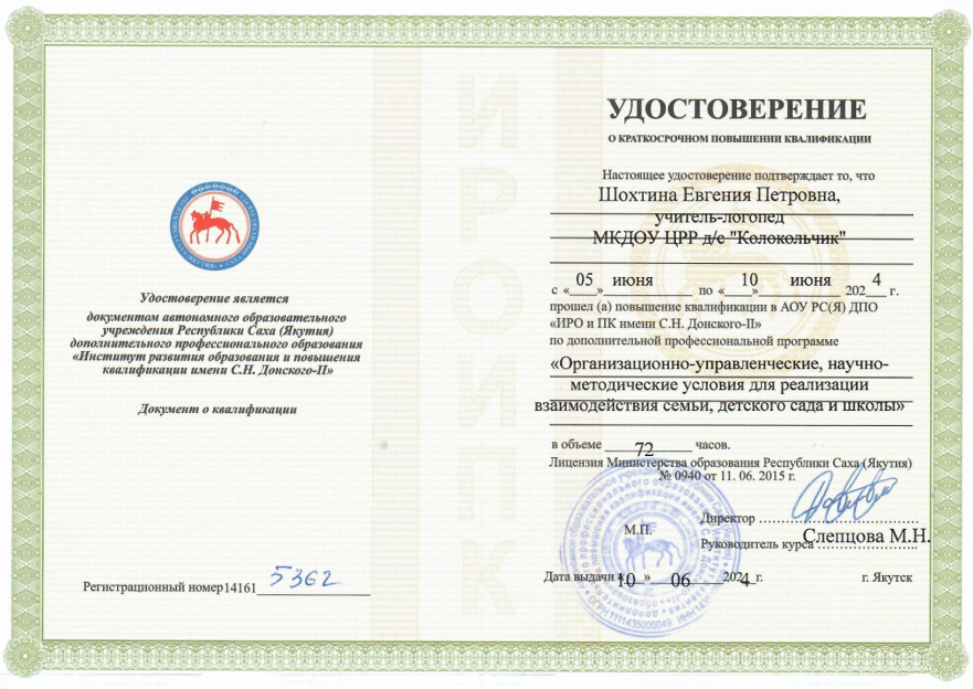(Удостоверение № 14161 5362 от 10.06.2024г.)