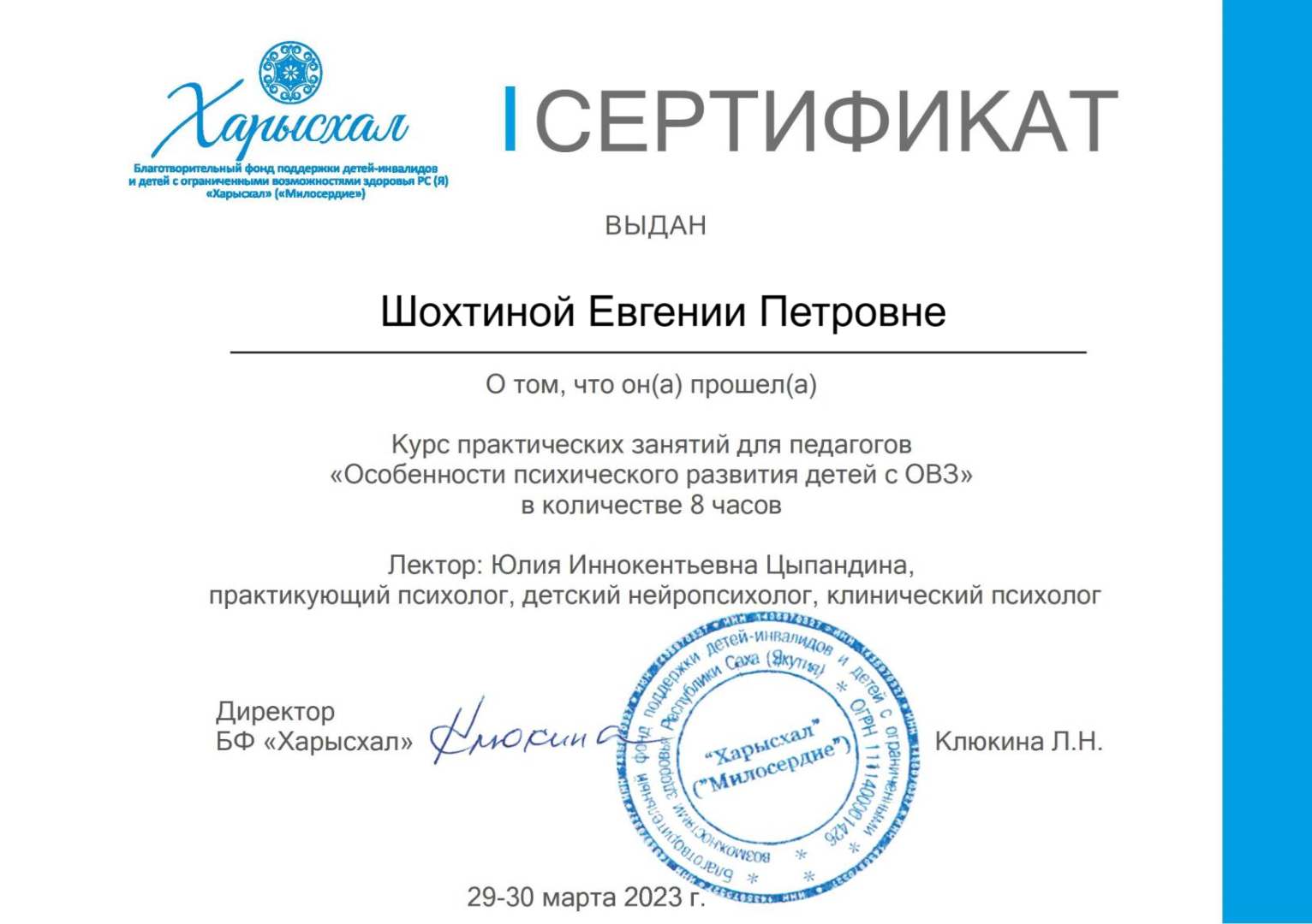 | Ф.И.О. | Шохтина Евгения Петровна |