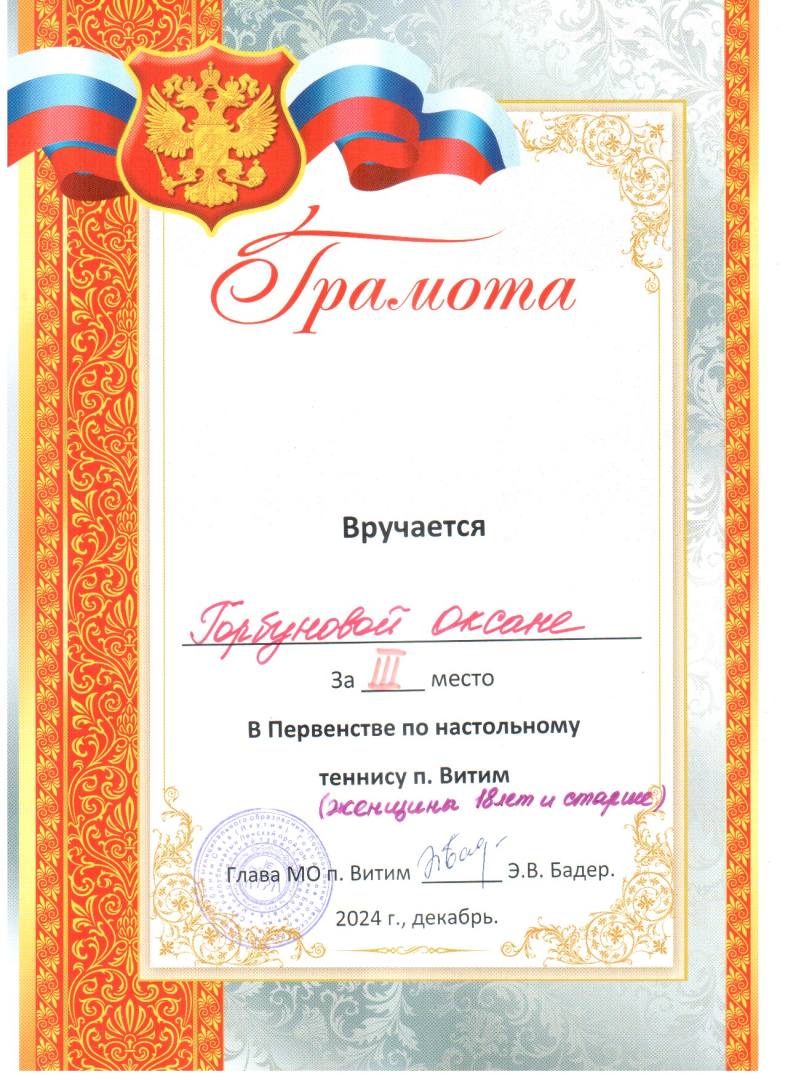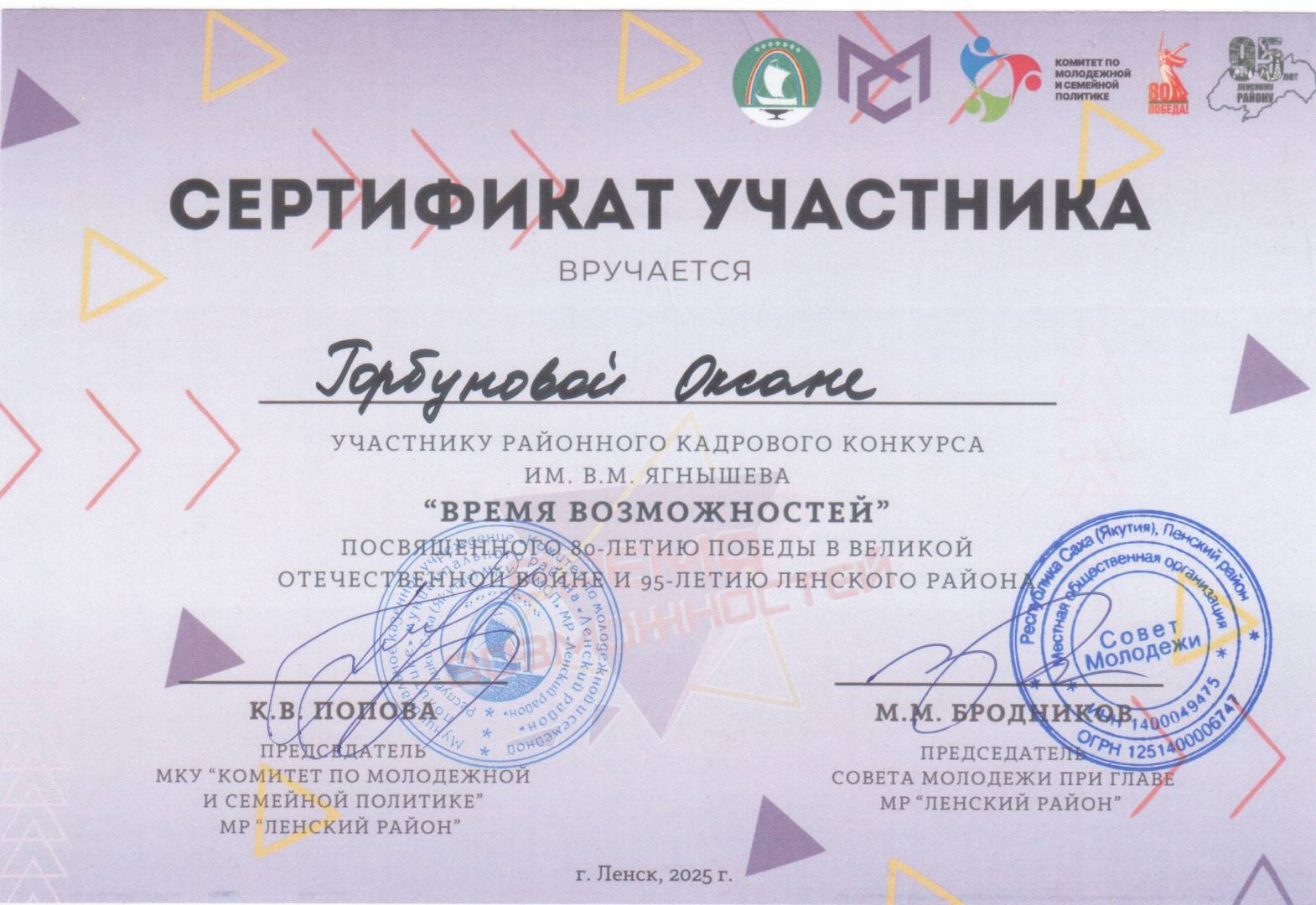 - Сертификат участника XIII спартакиады работников образования Ленского района посвящённой году «ПЕДАГОГА И НАСТАВНИКА»