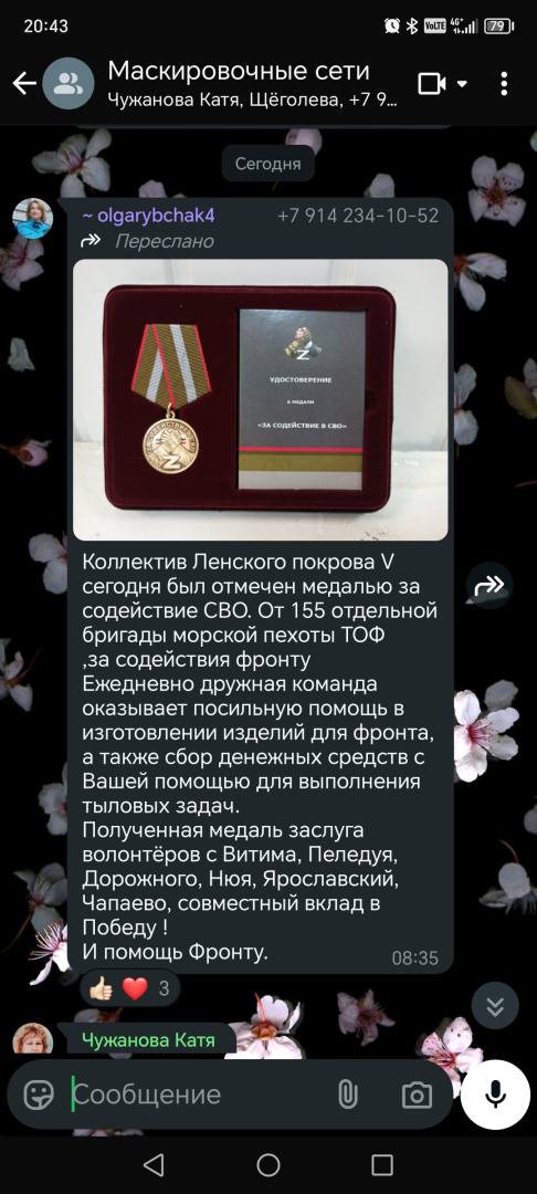 - Удостоверение и медаль «За содействие СВО» коллективу Ленского покрова V