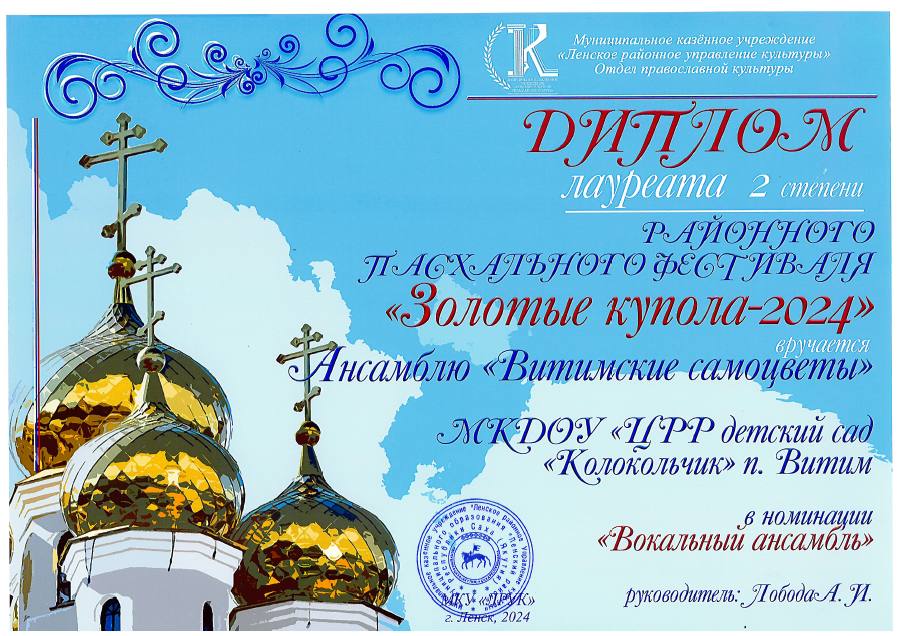 - Грамота Главы МО Посёлок Витим за активное участие в общепоселковом концерте посвящённому 100-летию образования ЯАССР